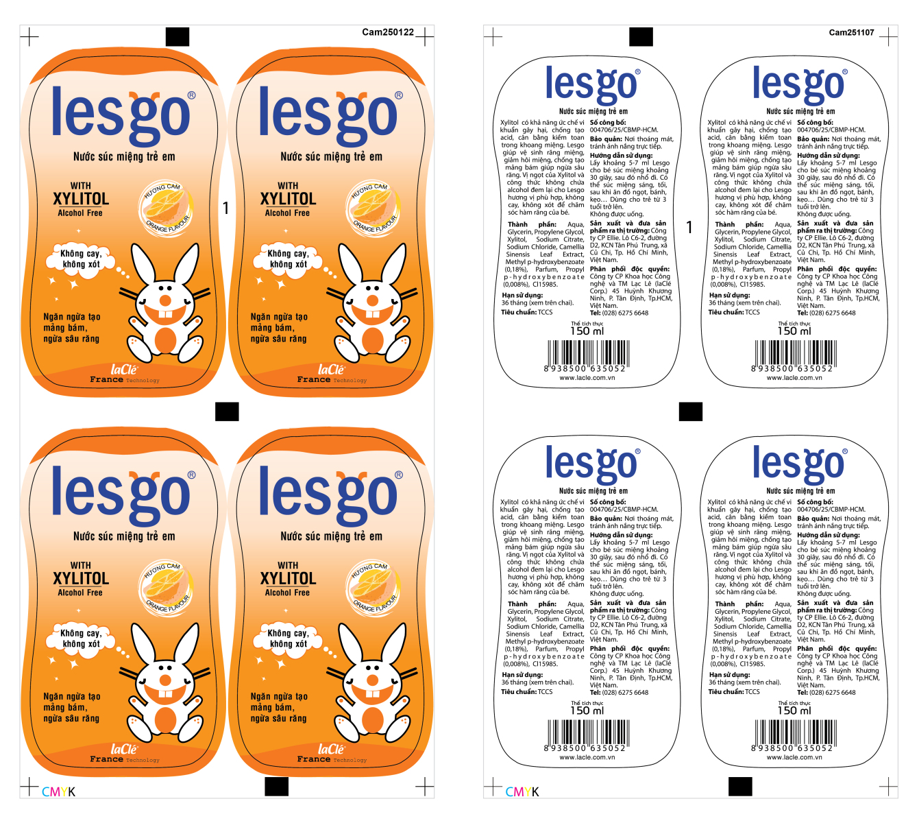 | 18 | Ghi chú | Lưu ý: 1. Mặt trước: Decal nhựa đục, 4 màu góc + 1 màu pha( chữ Lesgo). 2. Mặt sau: Decal trong, lót trắng+ 1 màu đen + 1 màu pha (chữ lesgo). 3. Mặt trước và mặt sau in riêng vì khác chất liệu. 4. Kích thước giấy mặt trước và mặt sau bằng nhau. 5. Hướng quấn cuộn: Nhãn trước dạng 1 ; và Nhãn sau dạng 02. |