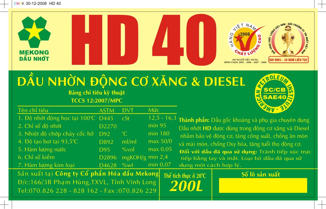 | STT | Tên Sản Phẩm | MKG – HD 40 200L [29-12-2008] |