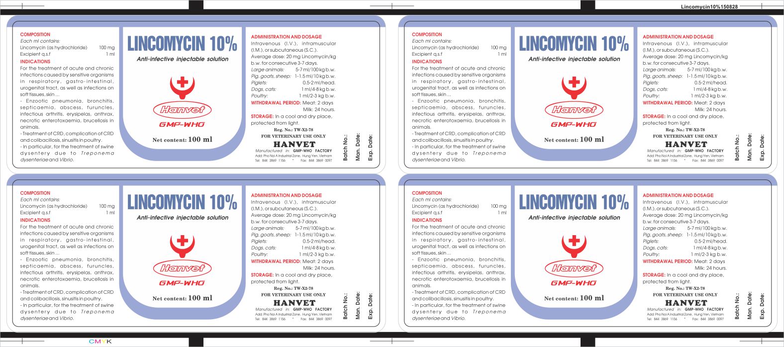 Chữ Lincomycin 10% chạy cùng màu với sọc nền – đã sản xuất (anh Hiền báo).