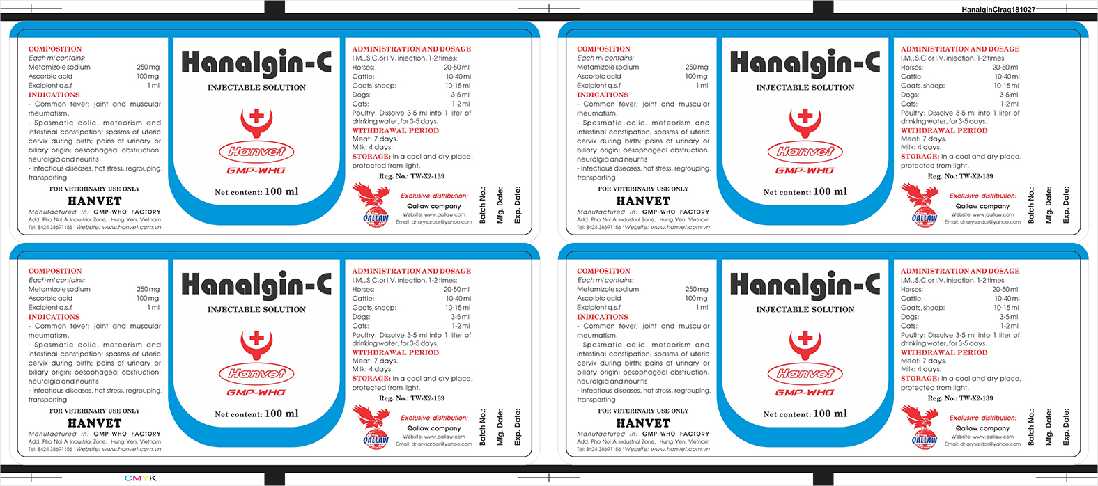 | GHI CHÚ NHU CẦU ĐẶC BIỆT KHÁC:-Màu sắc như DTY – Hanalgin C 100ml_XK_Irac
